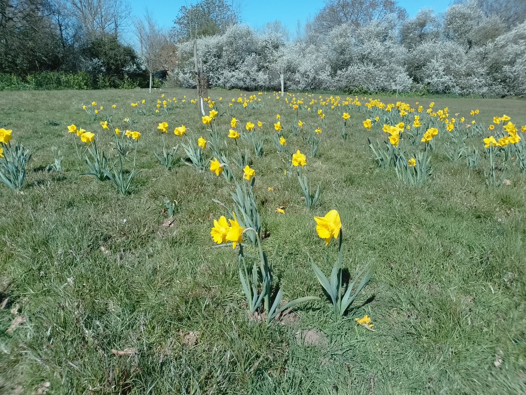 It was only a few short months ago, on 3 January 2026, that BCOST volunteers helped Blaxhall tree Warden, Joy Shaw, to plant a sackful of daffodil bulbs at the village playing field. We planted them around the fruit trees towards the Church Road side of the field, to supplement those towards the Station Road side which were planted in November 2023.