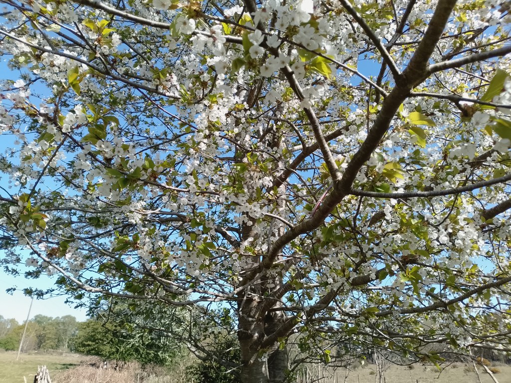 At Stone Common, the new fruit trees planted by the children and young people of Blaxhall on 5 March, now well watered and protected by wire mesh to keep the deer at bay, are beginning to come into blossom – a sure sign that spring is on the way!