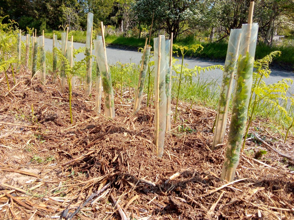 The raked-up bracken, stacked on the bases of the old pig sties, quickly transforms itself into an excellent ericaceous compost, which has come in useful as a mulch for newly planted hedging.